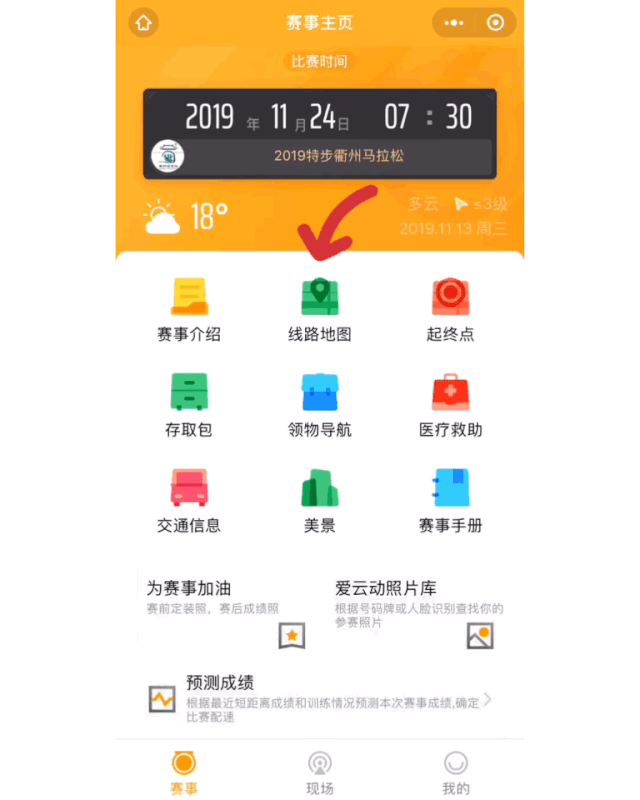 点击主页下方/路线页面右侧“为赛事加油”
