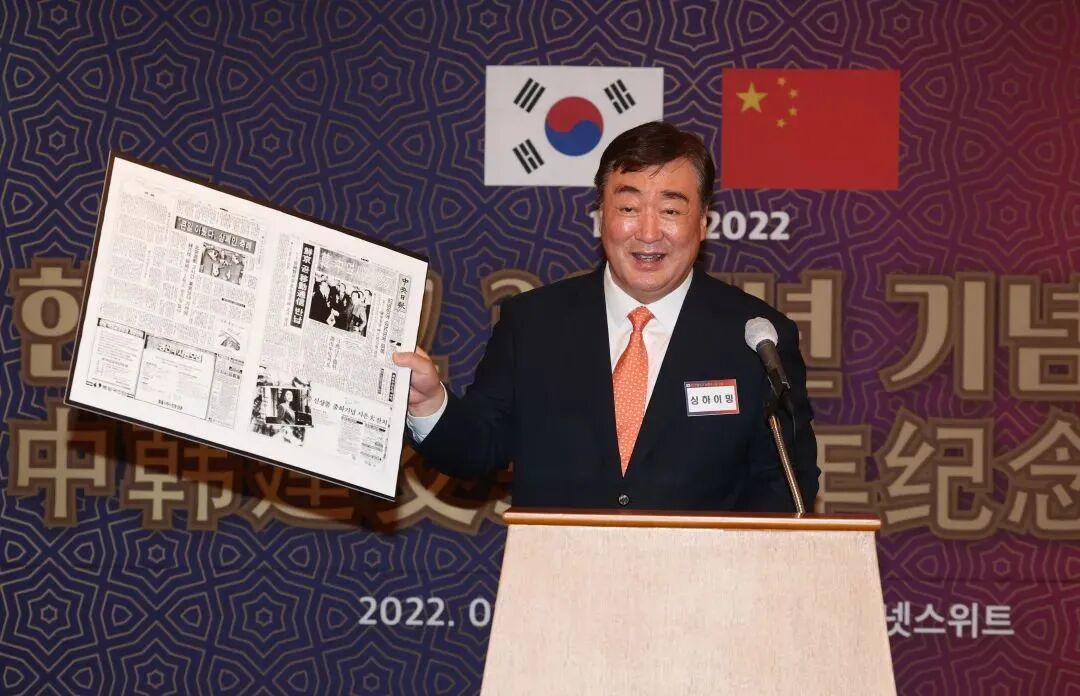 在当时与台湾保持“外交关系”的30个国家中,韩国是唯一的亚洲国家,也是唯一在国际舞台上具有政治、经济实力的国家。因此有台湾媒体称,这是自1979年大陆与美国建交以来台湾所遇到的最严重的“外交”挫折。《中国时报》称:“韩国一直被认为是最有可能在与中共建交后对我采取‘双重承认’的国家,但是迹象显示,双重承认——包括韩国在内——至今没有一个地方行得通。”这个话题成了台湾社会的关注焦点。许多人认为,台湾应该紧缩大陆政策,甚至暂时中止一切对大陆的经济投资,禁止台湾居民赴大陆旅游。但“行政院长”郝柏村表示,要继续推动两岸交流。一些学者也指出,“紧缩大陆政策”的意见是一种“情绪性反应”。台湾大学教授张麟征指出,“外交”政策其实是枝节,大陆政策才是根本。台湾政治大学国关中心副主任赵春山认为,过去台湾采取“攻势的外交政策,守势的大陆政策”,其实是相当情绪性的做法,反过来才是比较理性的政策。国际社会对中韩建交普遍评价积极。日本时事社记者写道:“推进改革开放路线的中国,要专心从事经济建设,就需要一个稳定的外部环境。因而,近几年来中国一直在努力加强同周边国家改善关系,如同前苏联和越南关系正常化,同蒙古和印度改善关系等等。同过去曾经交过战的韩国建交,也是这一外交战略的组成部分。”1992年9月,中韩建交仅仅一个月之后,卢泰愚偕夫人和女儿正式访华。在这次访问中卢泰愚不只一次谈到,由于公务在身不能去山东寻根(卢泰愚自认是山东卢姓后裔)是他的最大遗憾,卸任后将再来中国。◆1992年9月29日,韩国总统卢泰愚访问中国时游览长城。张庭延担任了首任中国驻韩国大使。在任期间,他几次去寓所拜访卢泰愚,谈话中几乎没有一次不提到去中国“寻根”之事。1998年,张庭延卸任大使之职。他记着卢泰愚的嘱托,回国后去山东查阅了大量历史资料,确认卢氏原系姜氏的分支,在韩国新罗时代移居全罗南道光州。2000年6月,卢泰愚带夫人和女儿再次访华。这次他终于得偿所愿,访问了山东,在济南附近的卢庄祭扫了卢王墓,植下四株松柏留念。他应邀在山东省举办的世界卢氏源流研究会创立大会上讲话,说在他的一生中,能为促进韩中建交贡献一份力量,实在是一件值得庆幸的事。张庭延1992年赴汉城履新时,两国之间尚未开通航线,去汉城只能绕道香港或东京,他选择了香港这条稍近一点的路线,1200公里的距离走了整整一天,而现在,如果事急甚至可以当天往返。他说,韩国人以前总说中国对他们来说是“近而远”的国家,现在如卢泰愚所希望的,两国已成为真正的近邻。2021年,中韩双边贸易额突破3600亿美元,是建交当年的72倍。中国已连续18年位居韩国第一大贸易伙伴国,中韩贸易接近韩与美、日、欧贸易额总和。◆8月19日,邢海明大使应邀出席韩国《中央日报》主办的“中韩建交30周年论坛”并致辞。张瑞杰和张庭延都与权丙铉成了朋友,经常来往,权丙铉每次来中国都会与他们相聚。权丙铉组织了一个韩国青年绿化团,每年都会到内蒙古帮助中国绿化,还在新栽的树上挂上写有张瑞杰和张庭延名字的牌子。2000年之后,张瑞杰有一次去韩国出席论坛,与权丙铉重访华克山庄,但那里已经改建,当年的谈判之所不复存在。(本文参考了钱其琛《外交十记》、张庭延和谭静所著《出使韩国》、宋成有等著《中韩关系史》)![]()