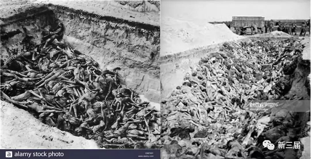 尸骨成山。当年艾森豪威尔将军站在这样的尸堆前,对随行的记者说(大意):把这些都照下来留作证据,看那些狗娘养的以后还怎么抵赖!