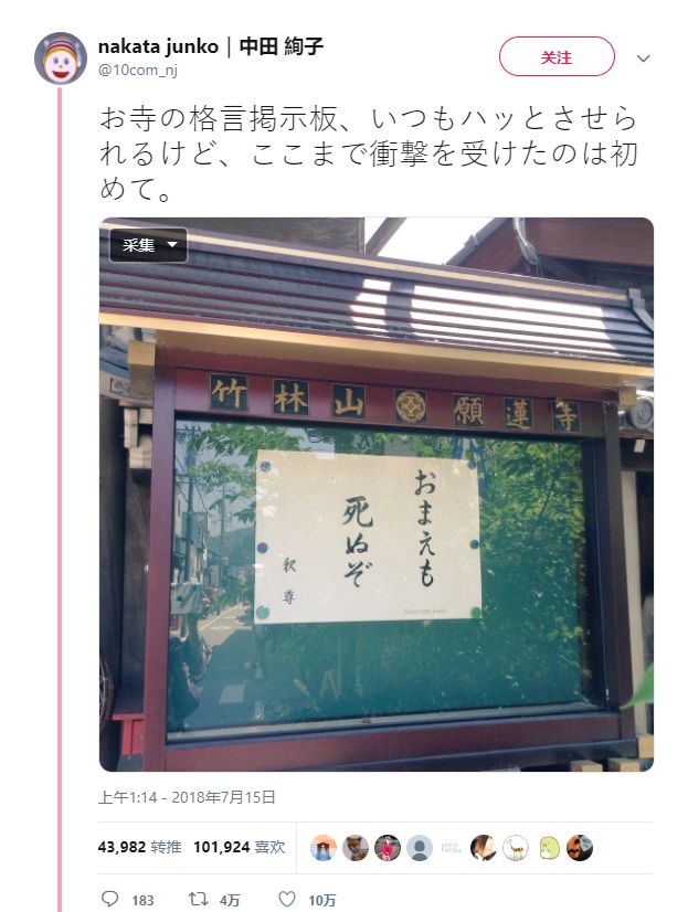 像获得2018寺庙布告栏大赏,4万人转发,10万人点赞的那句——“你也会死的”。