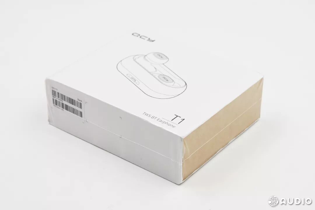 包装正面特写,中间是耳机,右下角是T1 TWS BT Earphone。