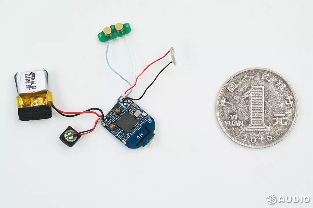我爱音频网使用1元硬币与耳机内部元件进行大小对比。