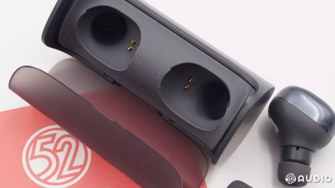 这款耳机的充电盒中没有内置电池,但是耳机盒部分为耳机充电提供了良好的保护电路;耳机采用了德国VARTA纽扣锂电池,并且左右耳机采用NFMI的方式通信,与市面上大部分耳机都不一样,设计较为独特;耳机采用单动铁单元设计,可以带来更高的解析度。