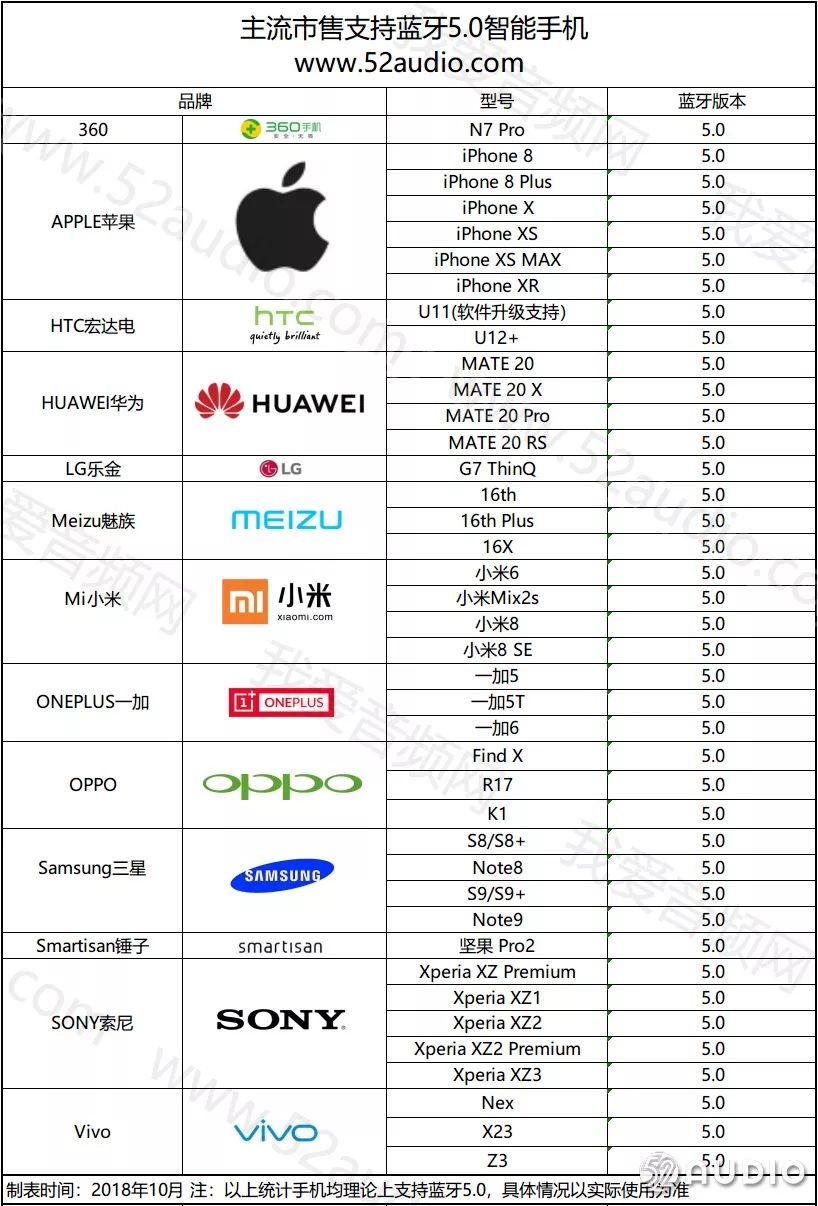 据我爱音频网统计,目前已经有13大品牌40款手机在硬件上支持了蓝牙5.0,为未来几年即将爆发式增长的蓝牙5.0产品市场奠定了坚实的基础。