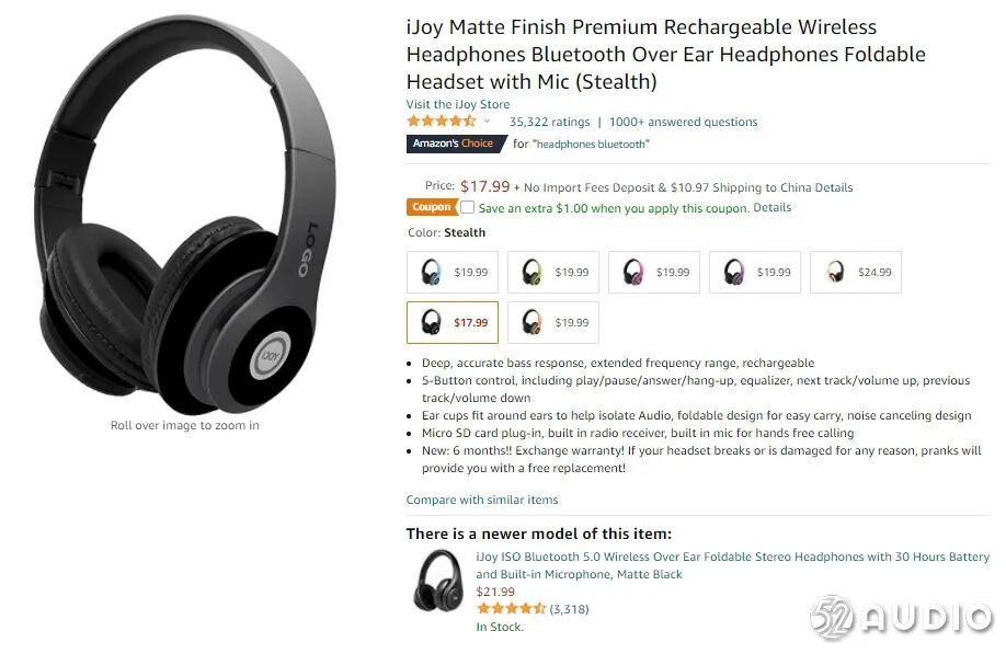 综合音频产品市场的调研报告和我爱音频网对亚马逊销量的分析,我们可以看到在美国市场上,头戴式蓝牙耳机仍然有较高的市场关注度,相较于TWS真无线耳机,其优势在于耳罩体积大,可以放下更大的扬声器单元和电池,单次续航时间长,声音表现和降噪效果较好。另一方面我们也看到,头戴式蓝牙耳机整体的产品素质相较于真无线耳机来说两极分化较为严重,仍有提升的空间,这可能是潜在的市场机遇。