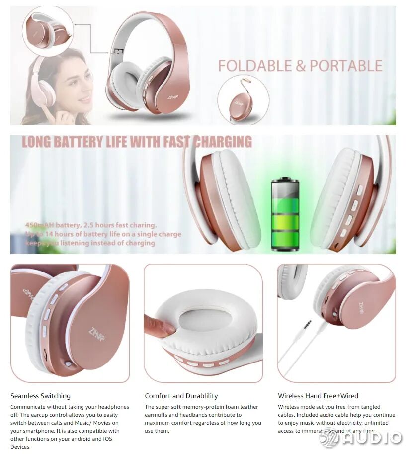 3、Zihnic Foldable Wireless and Wired Stereo Headset