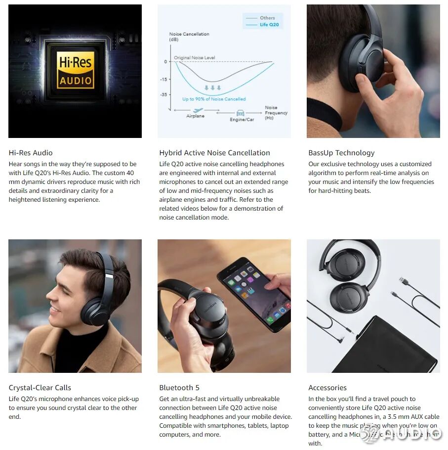 1、Soundcore Life Q20 Hybrid ANC Headphones