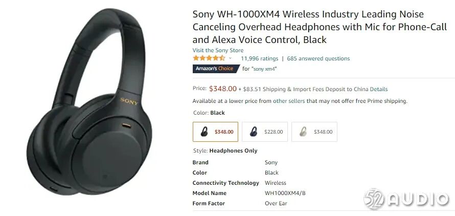 按照产品价格由高到低给亚马逊销量前十的头戴式蓝牙耳机排序,发现只有索尼WH-1000XM4一款耳机售价破百,并且348美元的售价远超其他产品;声阔Life Q30的价格是79.99美元独一档,其余产品售价集中在50美元和20美元两个档位。