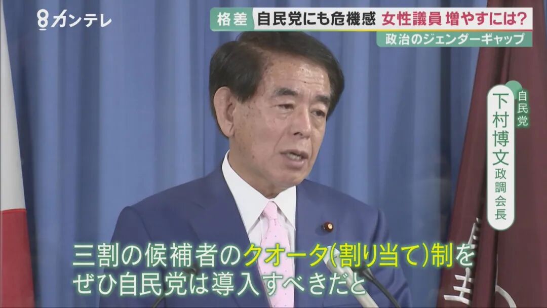 2020年,自民党选举对策委员长下村博文曾提出一个方案。他认为,日本女性议员比例在国际上处于较低水准,自民党应当于2030年将各级女性议员比例提升至30%,导入候补者配额制。每个都道府县应当争取选拔一位女性成为国会议员。