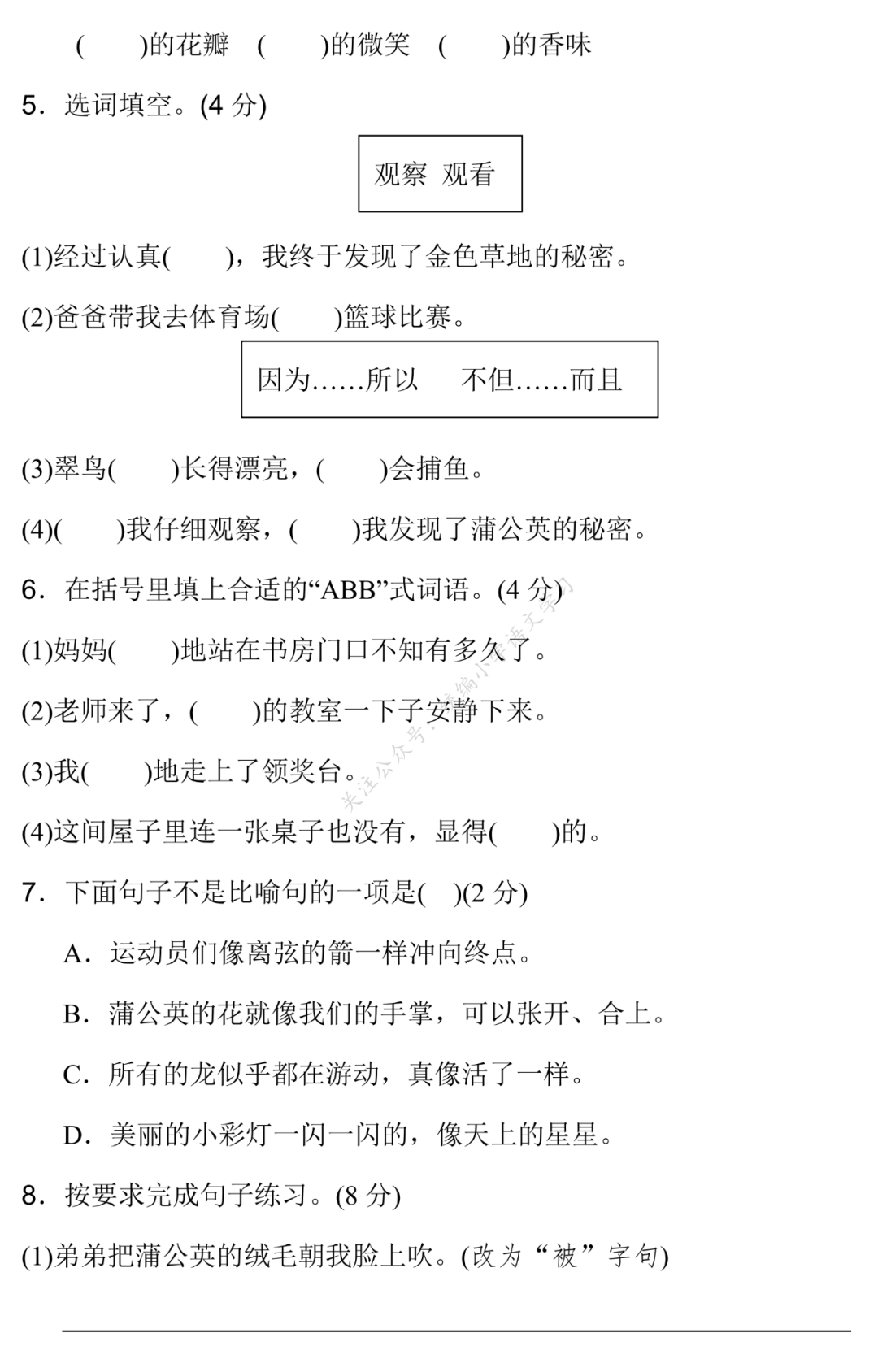 关注后发送消息“上册单元试卷5”