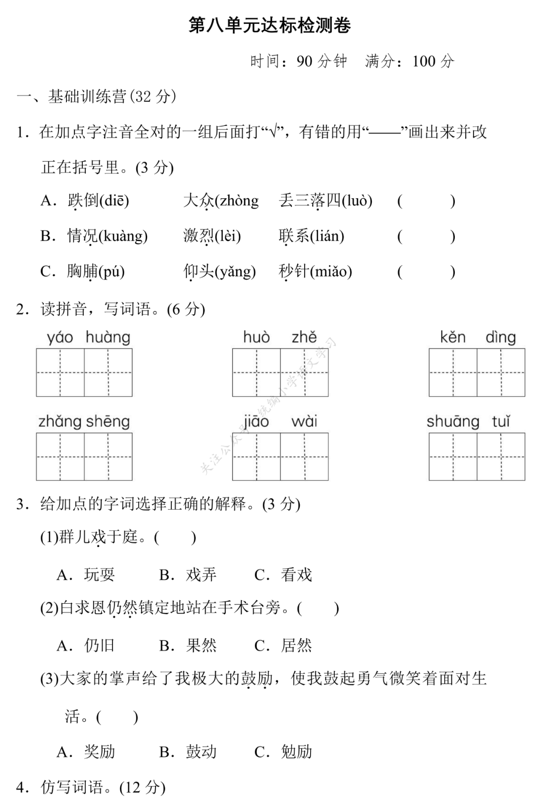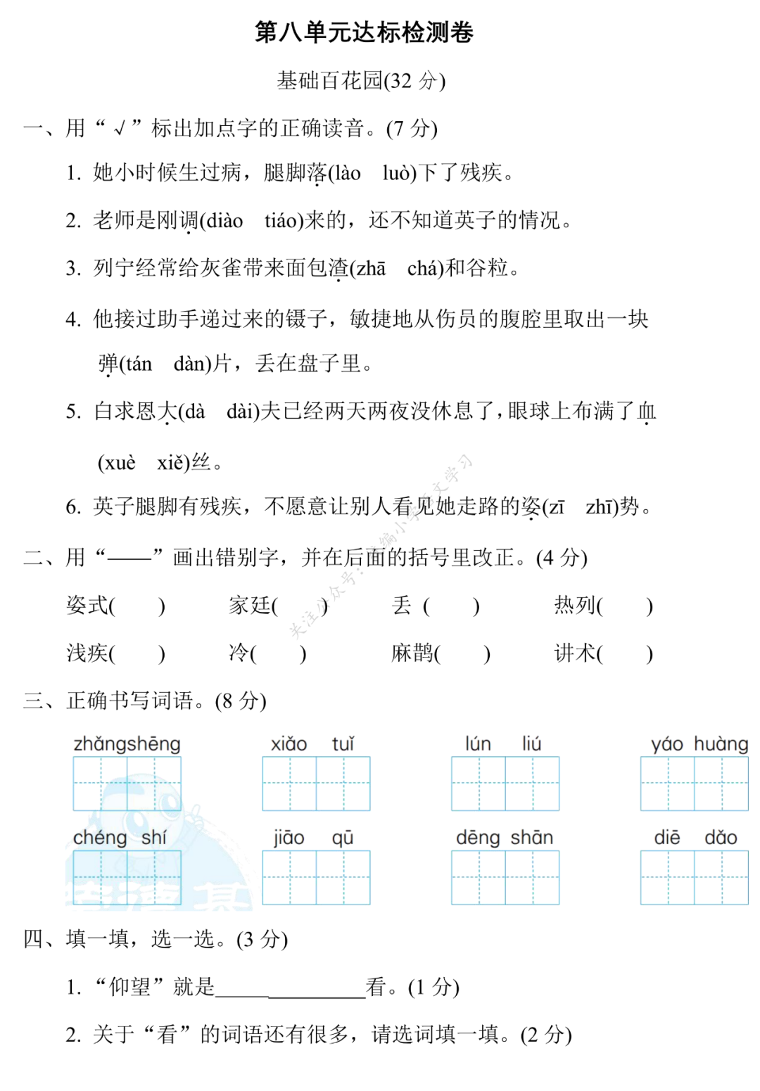 小语老师今天给大家整理部编版三年级语文上册第八单元的达标检测卷,请各位家长打印给孩子练练,更好的巩固第八单元的知识点!