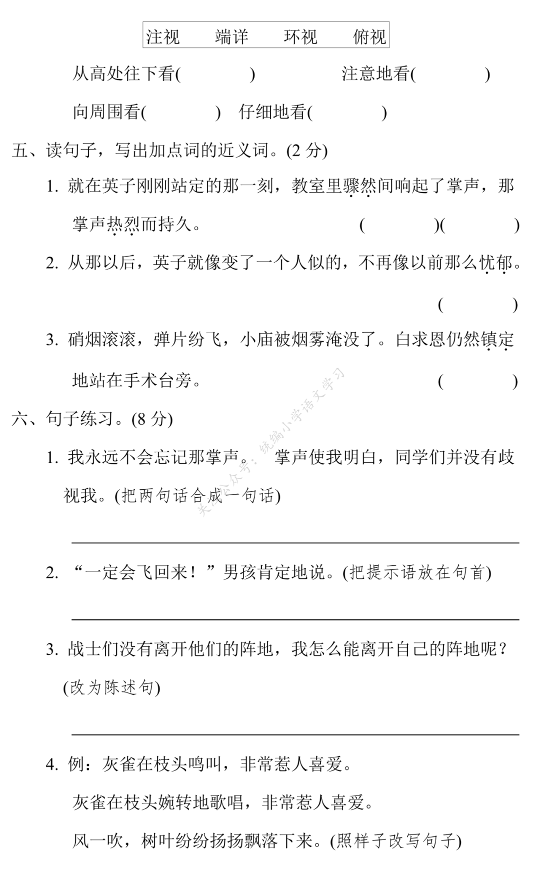 关注后发送消息“上册单元试卷8”