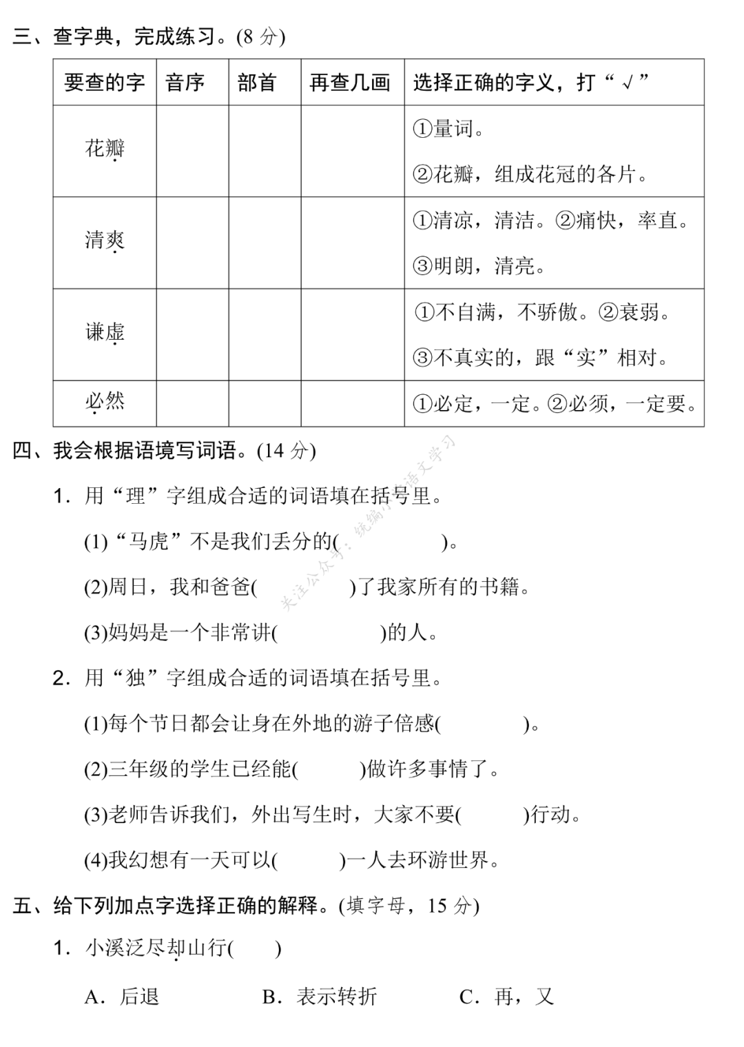 关注后发送消息“下册专项试卷3”