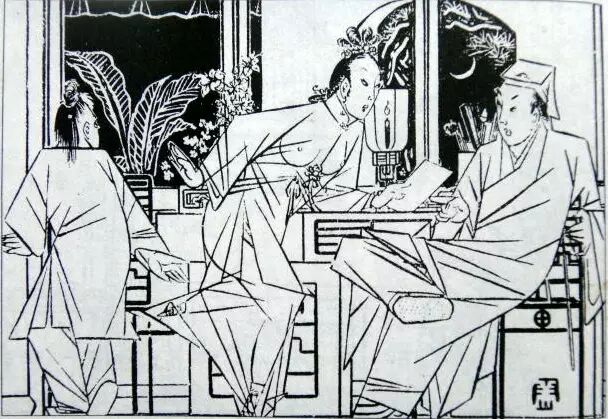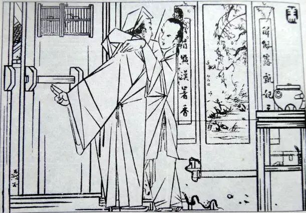 309、潘金莲在席上给陈敬济斟酒,顺手在陈敬济手上一捻。陈敬济一边把眼朝着众人,一边在下边把金莲的小脚踢了一下。这些,叫蕙莲从窗眼里看了个明白。