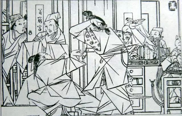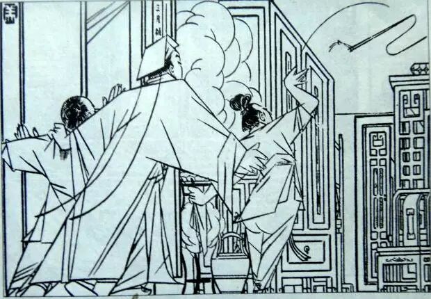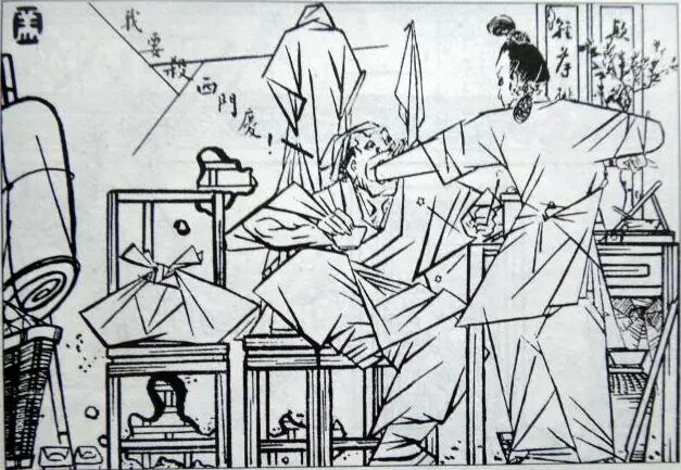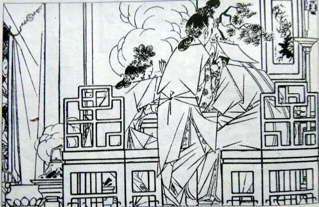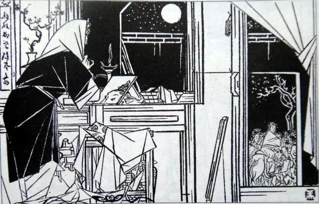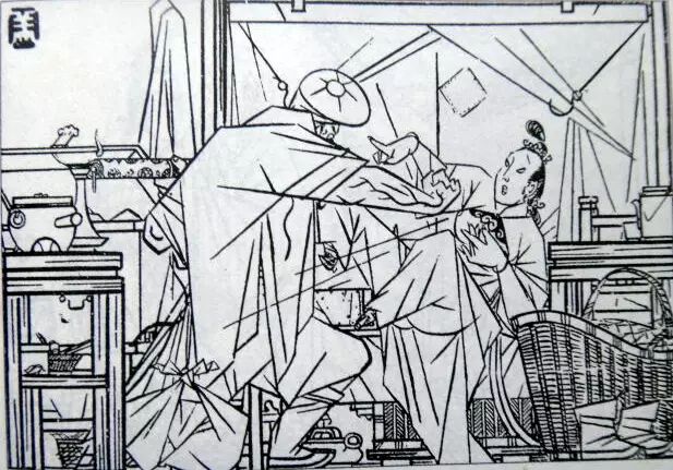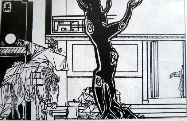 曹涵美先生的长篇连环画《金瓶梅全图》原连载于《时代漫画》,成书于1942年,由当时的上海国民新闻图书公司出版发行,共500图。《金瓶梅全图》绘画风格别具一格,它立足于传统的单线白描,又借鉴了日本浮世绘、西方立体派艺术,并运用图案、木刻等绘画技法,甚至还融入浓烈的漫画意识,使得整部作品更显生动、可亲。