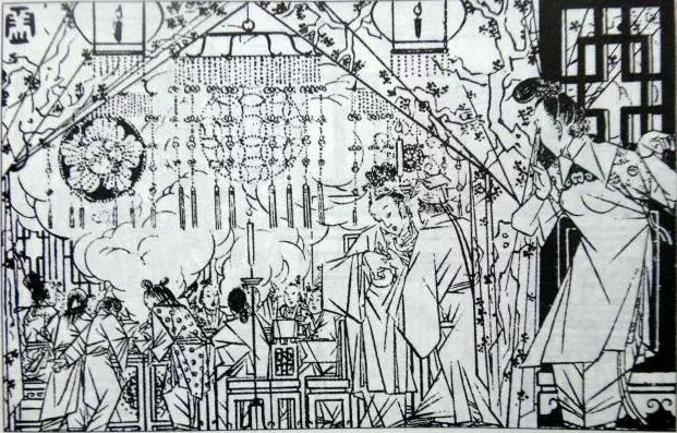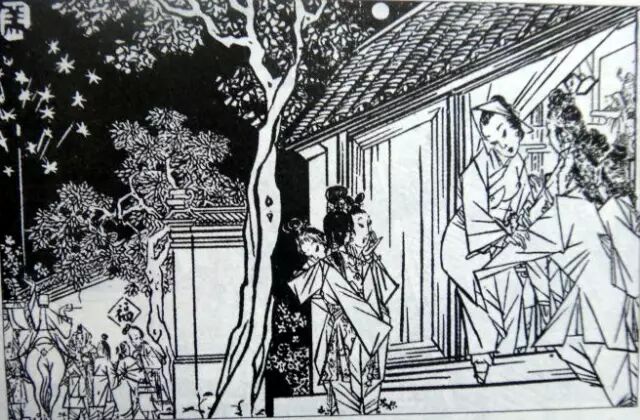 320、清明将至,西门庆出去了。这日,月娘在园子里扎了一架秋千,金莲、萍儿站上去荡。这时陈敬济来了,凑上前去说:“我来送二位娘。”先把金莲裙子带住,使一把劲,那秋千便飞在半空中。