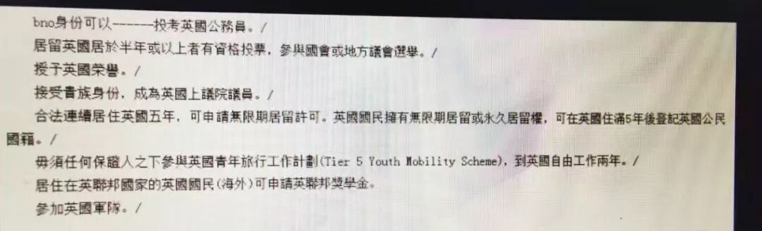 由于这些人的国籍其实属于英国,那么笔者基本尊重他们的国籍和他们的选择,因此采用一个更加正式和正确的划分,称他们为“在港外国人”。客观地说一群英国人,打着英国旗,确实没什么好指责的。我们的大陆网友有不少人条件反射地对他进行了反驳,都在和他争辩香港人怎么不是中国人了?甚至很愤怒。但笔者冷静下来一想,发现,把这个人的说法改一下就是对的,确实,并不是所有香港人都是中国人。这个人晒出了他们的英国国籍,和他们所持有的英国护照(BNO)。说明他们接受英国大使馆保护,是英国国民。他准确地告诉了我们,香港一共有350万人持有英国护照,即为英国籍的英国国民。据说这个数据已经上升到400万。没证实过,但足以说明,香港确实有很大一部分人拿着外国国籍。根据他们的国籍和主观意愿,我十分同意他们为在港外国人。我们的大陆网友比较较真,纠缠于拿着所谓英国BNO护照的,到底是不是正式的英国国民。还是英国的二等公民。其实我觉得这种较真大可不必。有人愿意给英国人当二等公民,拿了一本海外护照就洋洋以英国人自居,处处替英国的利益设想,这种人难道还值得中国挽留他们吗?当然发帖这个家伙告诉我们,人家的英国国籍是真实不假的,拿了BNO之后,他们从此能够为英国做些什么,并且他们很愿意尽义务。愿意为一个国家尽义务,并宣誓效忠,以此为荣的,不是该国国民是什么,难道还是国际友人吗?所以,什么BNO护照,是一等公民还是二等公民,这要紧吗,只要加入了外国籍,他们就是外国人。我们一群中国人就是太好心,何必还为他们瞎操心!我们大陆人,心眼实在,多年以来在“香港同胞”这个大词汇的遮蔽下,轻易地以为所有的香港人都是我们的同胞。但事实上,由于特殊的历史原因和英国殖民遗留问题,所谓的“香港人”其实是个大杂烩,其组成成分非常复杂。在所谓的“香港人”这个大题目下,至少了包括了以下三种人:1、外国籍香港人(或者说在港外国人);2、香港香蕉人;3中国籍香港人。由于之前认识不清,我相信绝大数大陆人都没有仔细区别过“香港人”和“香港人”是不一样的。这也使得部分“外国人”和“香港香蕉人”在“香港人”这个大题目下,得以浑水摸鱼,轻松地隐藏自己,并每次都绑架“香港人”这个整体,制造中港矛盾,制造陆港仇恨。笔者现在发帖,正是要提醒我们大陆同胞,需要仔细分辨和认识这三种不一样的香港人。只有这样才能正确地区别出谁是同胞,谁并非同胞。所以,我觉得,作为大陆人也许应该感谢那些极力陈述自己外国人身份的杂牌子“香港人”。正是他们一语惊醒梦中人,提醒了我们一件忽略已久的事实。