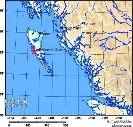 第二次地震时间是11:13,震中是离Port Alberni以西185公里的海底,震级5.6级,震源深度同样是海底5公里。