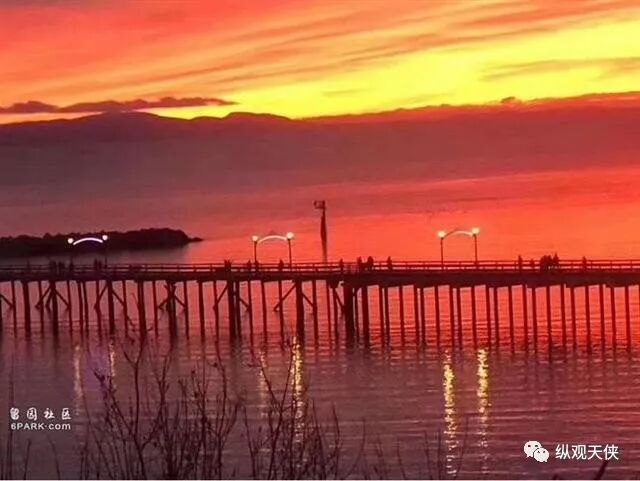 黄昏时分的白石海滩,红霞满天分外美丽,