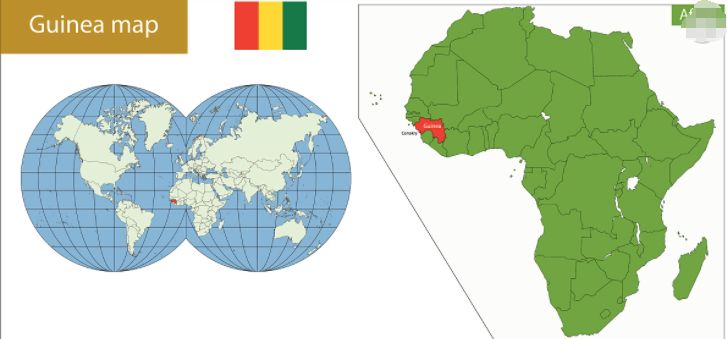 红色为几内亚所在位置