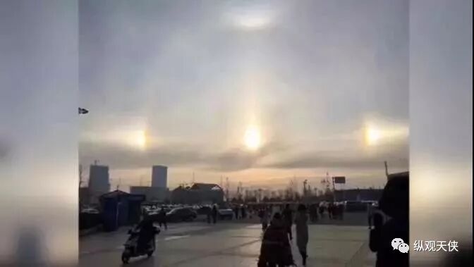 2019年12月12日,新疆霍尔果斯的空中出现了3个太阳的幻日现象,并伴有多道彩虹,让人如同置身仙境。当地一名大学生说,她看到这个奇景时,以为是错觉,并直呼:“天堂之门开了!!”