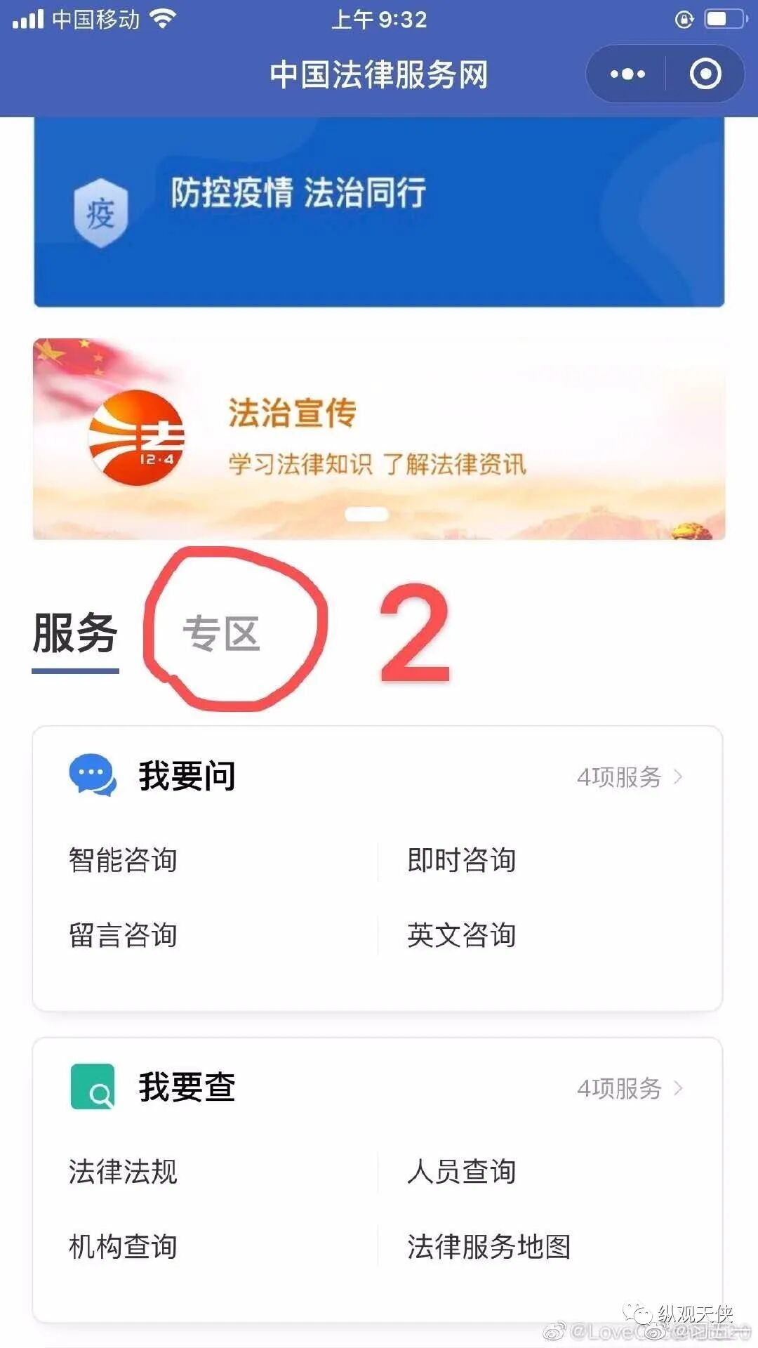 1.微信搜索“中国法律服务网”