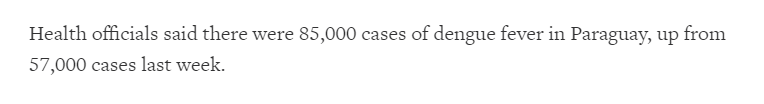 与此同时,远在世界的另一个角落,南美洲的巴拉圭也爆发恐怖的致命蚊媒传染病。