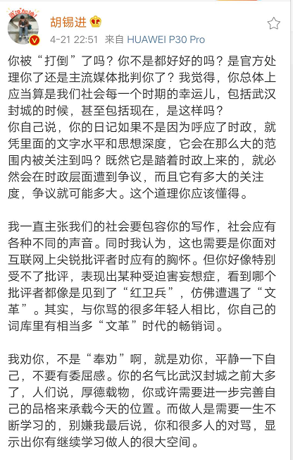 胡主编彻底不忍了,也开足马力不带一个脏字把方方批得体无完肤。![]()