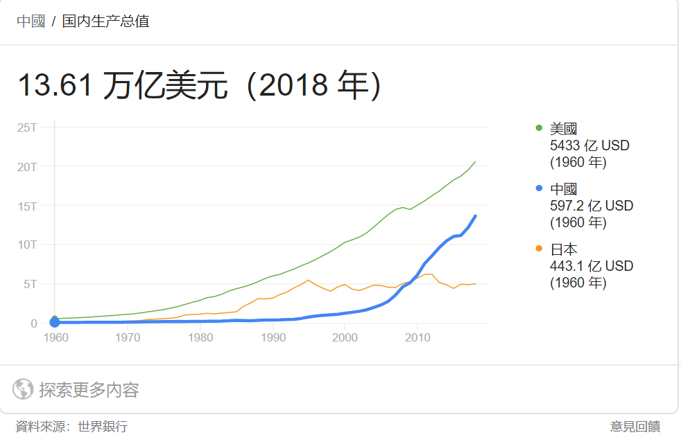根据世界银行的数据,2018年,美国全年的国内生产总值为20万亿美元,