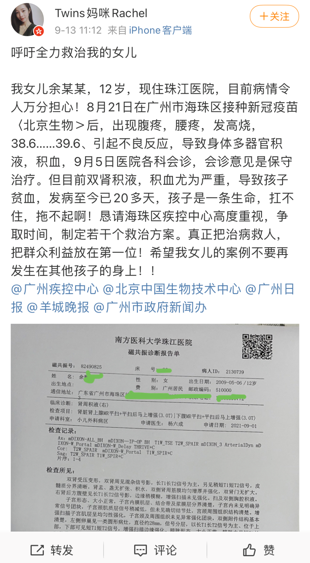 这是一位双胞胎女儿妈妈的呼求,其中一个女儿喵后病危。你会带孩子去打一喵吗?