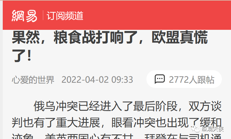 根据国家各大新闻媒体这两天的透露,现在外国媒体到处都在煽动情绪,认为我们中国“预知”了俄乌冲突的发生,预知了全球会发生粮食危机,预知了粮食价格暴涨。。。