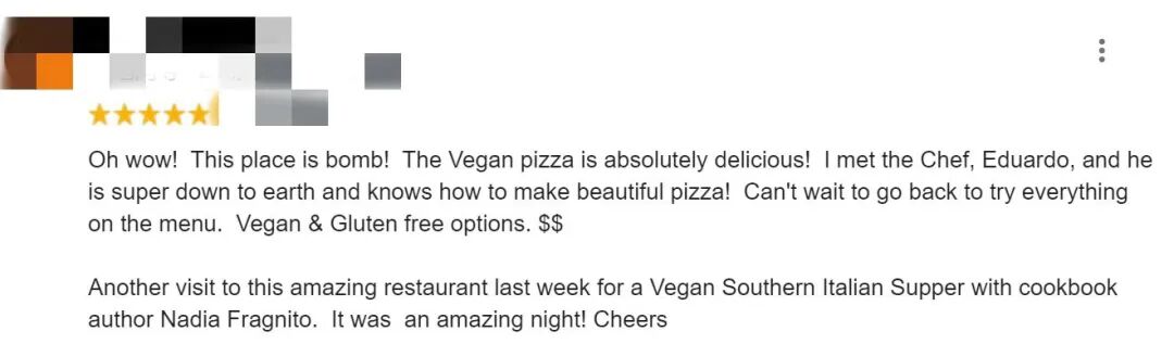 另外,还有小伙伴表示这里的素披萨真的很好吃!主厨人也很nice,非常懂做披萨的正确做法,已经等不及要将菜单上的所有菜品通通吃个遍!