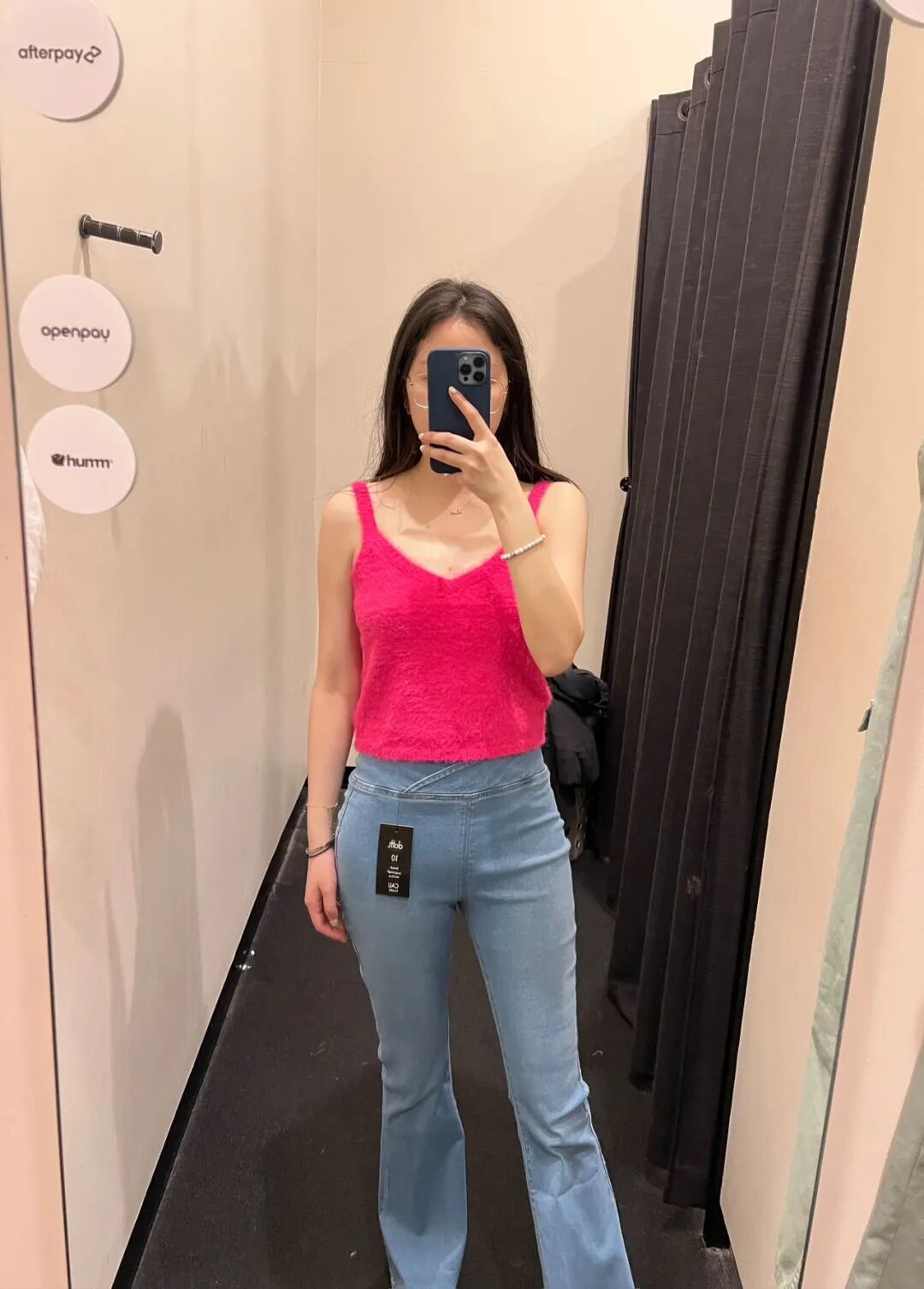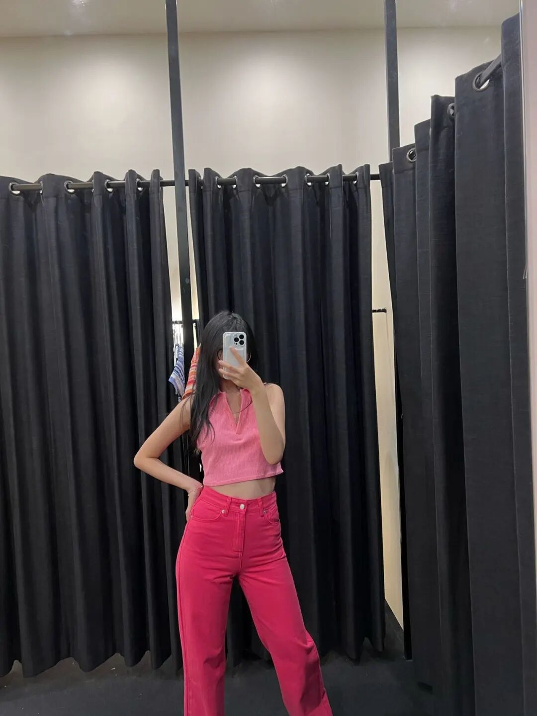 桃粉吸睛牛仔裤