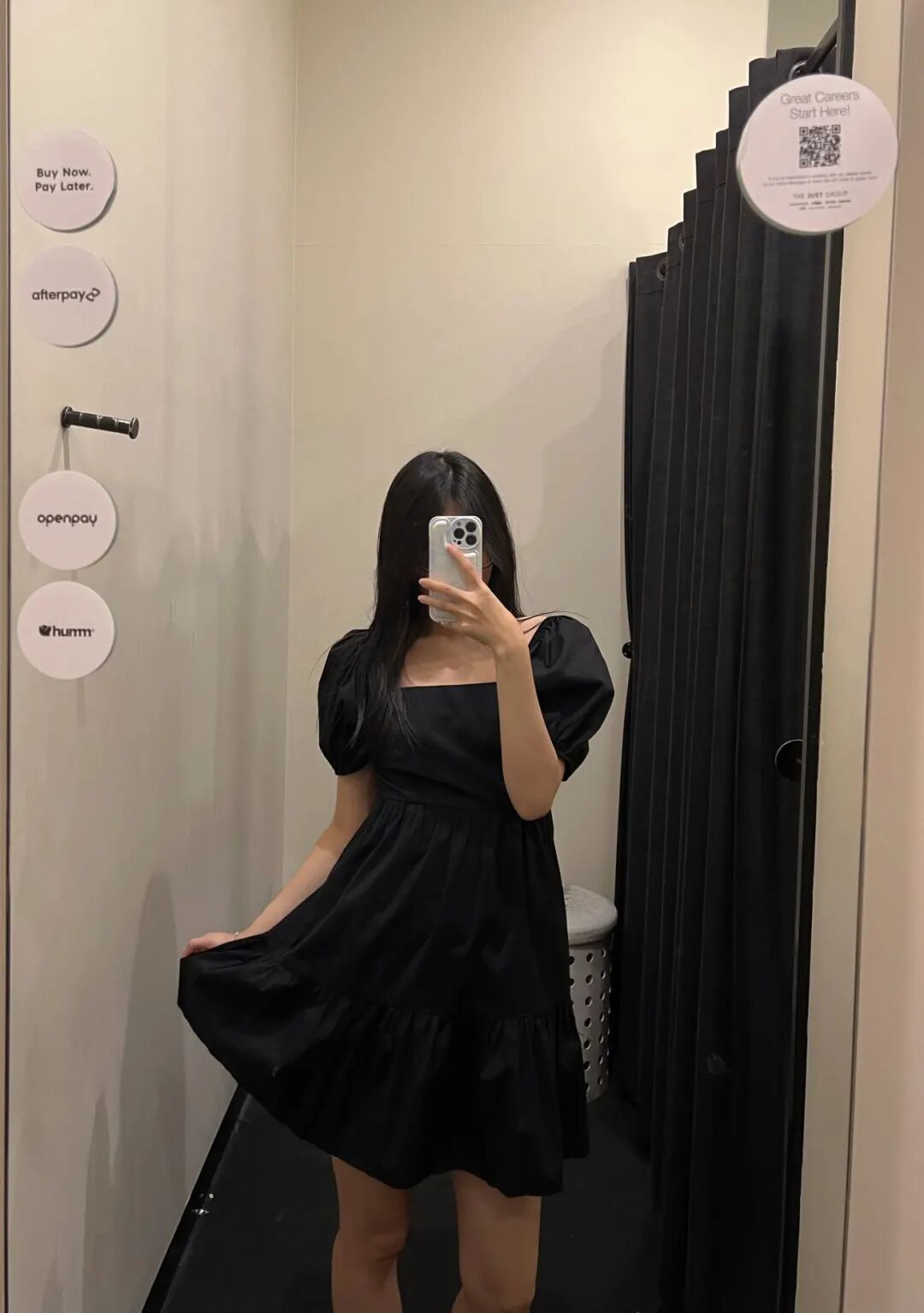 手臂粗的姐妹大胆买这条小黑裙!泡泡袖+方领设计可以视觉上营造直角肩和修长脖颈,而且收腰的位置就在胸下,实现胸以下都是腿的梦想,这不就来了!可爱甜美,很适合约会~