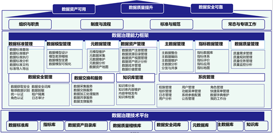 (3)技术域:数据治理的支撑手段,提供数据治理所需的数据架构、数据治理平台,包括元数据管理、主数据管理、指标数据管理、数据模型管理、数据质量管理、数据安全管理等功能模块。
