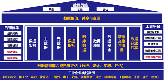 数据治理的理念不断发展和完善,涉及数据架构、主数据、元数据、数据质量、数据安全、数据资产运营等多个领域。目前工业企业在开展数据采集、数据整合、数据应用的过程中,已经逐步意识到数据治理的重要性,管理层也随着对业务精细化、决策智能化要求的提高而对数据治理的重要性认识有了根本的改观,并积极推动开展数据治理探索、实践工作。但是,多数企业在建立数据治理机制上还存在较大优化和完善的空间,在数据治理体系规划及建设上缺乏统一认识和实践参考,大大降低了数据治理的成效。