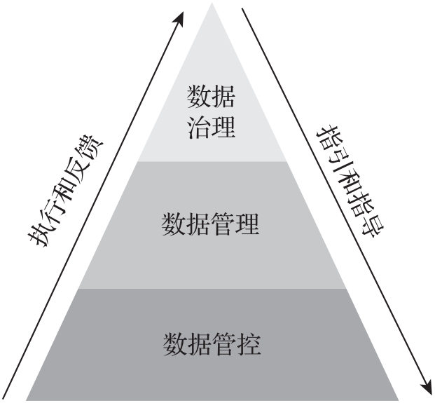 以上观点各有道理,这里笔者用一个“金字塔”模型来描述数据治理、数据管理、数据管控之间的关系,如图3-1所示。