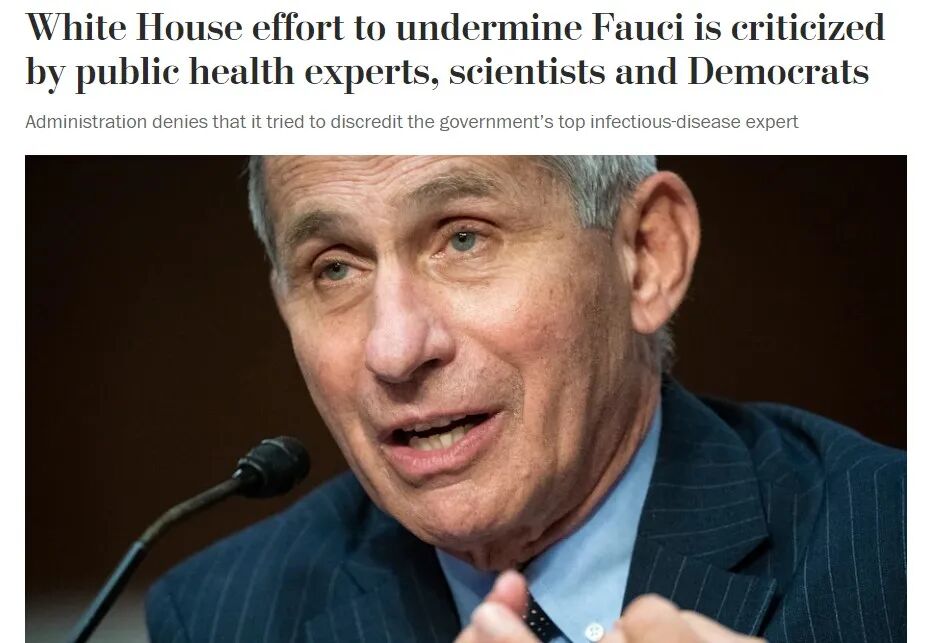 华盛顿邮报文章标题:公共卫生专家,科学家和民主党人批评白宫致力于破坏福奇