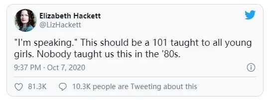 当卡玛拉·哈里斯(Kamala Harris)说“我正在说话”时, 我感觉到了。 你感觉到了。 你妈妈感觉到了 你奶奶感觉到了。 这个地球上的每个女人,无论生死,都可以感受到。 因为我们知道我们在谈话中被忽视、被打断或被怀疑意味着什么。 不要害怕说,“我在说话”