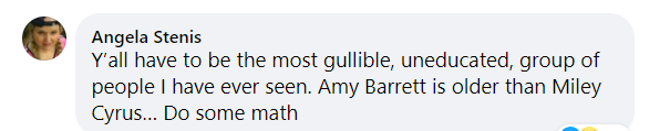 谣言:在1993年麦莉·赛勒斯(Miley Cyrus)的演唱会上,这位流行歌手对一个9岁的女孩说,只要你相信上帝,一切皆有可能。这个小女孩说,她信仰上帝,有一天她会因为阻止奥巴马医改和让杀婴违法而成名。这个小女孩长大后成为了艾米·科尼·巴雷特法官(Amy Coney Barrett),她被提名最高法院大法官。