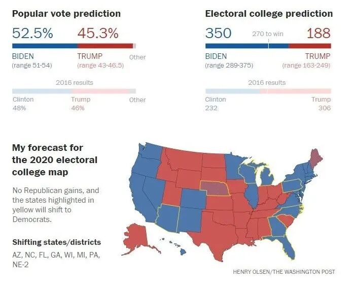 参议院和众议院的竞赛国会选举越来越取决于党派而不是个人。皮尤(Pew)最近的一项民意调查发现,大约80%的选民计划为其中一个主要政党投票。只有4%的人计划投票支持川普或拜登,并会投对立党的国会候选人。因此,确定国会的结果几乎完全取决于确定哪个总统候选人将赢得所讨论的州或地区。拜登将赢得共和党参议员所拥有的三个州——亚利桑那州、科罗拉多州和缅因州——而川普将赢得民主党控制的阿拉巴马州。如果拜登以7个点获胜,爱荷华州将非常接近。我预计共和党现任议员乔尼·恩斯特(Joni Ernst)会以微弱优势获胜,但是如果她输了,不要感到惊讶。但是,如果拜登赢得北卡罗来纳州,民主党人卡尔·甘宁汉(Cal Cunningham)应该会获胜,这将使民主党人控制参议院。如果拜登在全国范围内赢得8个百分点或以上,则民主党应同时赢得共和党控制的参议院席位。拜登如果能以7个点胜出,则他将以微弱优势赢得乔治亚。但是,乔治亚州要求参议员至少赢得50%的选票才能赢得11月份的席位。如果没有人能做到,则一月在前两名之间进行决赛。乔治亚州将在周二举行两次参议院选举,其中之一是由多名候选人组成的特别选举,我认为这两个竞赛都将进入决赛。在另一场比赛中,如果拜登在全国范围内赢得9个点或以上,则民主挑战者乔恩·奥索夫(Jon Ossoff)应该直接夺取席位。如果拜登赢得6个点或更少,川普很可能会使乔治亚和共和党现任大卫·珀杜(David Perdue)留任。由于整个国家的整体气候,众议院竞选对民主党人非常有利。众议院民主党在2018年进行的全国选票的大约领先8个点,拜登应当赢得几乎所有的40个席位。这位前副总统也有可能赢得共和党保留的许多川普在2016年以微弱优势赢得的席位。共和党人将夺回一些重任共和党或共和党倾向的席位,但该数字将无法达到民主党人赢得的席位。与全国大选一样,民主党获得的多数席位都会在郊区,那里有大量受过大学教育的选民,他们大多放弃了川普的共和党。捍卫“人的权利”这一结果不会自动提供拜登所说的要恢复的民族团结。由于人们在如何生活的重要问题上存在分歧,我们的国家处于分裂状态。民主党人对人权的构成有一种看法,而共和党人则有另一种看法,这些分歧不容易妥协。最近就任命艾米·科尼·巴雷特(Emy Coney Barrett)法官到最高法院进行的争执清楚地表明了这一争议的一个方面;有关如何应对气候变化和新冠病毒大流行的争论可能会在2021年初展示出其他方面。但是,随着我们持续的危机进入下一阶段,周二的投票可能会给民主党带来优势。纵观整个历史,关于根深蒂固的信念和价值观的斗争(例如我们现在正在经历的)往往不会顺利结束。交战双方决定分开,或者一方完全破坏另一方导致单方面确定和平条款。对于真正的美利坚合众国来说,两种结果都不会有好处。托马斯·潘恩(Thomas Paine )在他的“常识”附录中写了一些内容,成为里根最喜欢的名言之一:“我们有能力重新开始世界。”(We have it in our power to begin the world over again. )从字面上看,这种情感将以流血和革命结束。但这不是里根读它的方式。他认为潘恩的想法是对美国精神的乐观表达。只要美国人忠于自己的政治遗产,即每个人的自然平等,里根相信,每一代美国人都将永远崛起以迎接他们的“与命运的会合”。