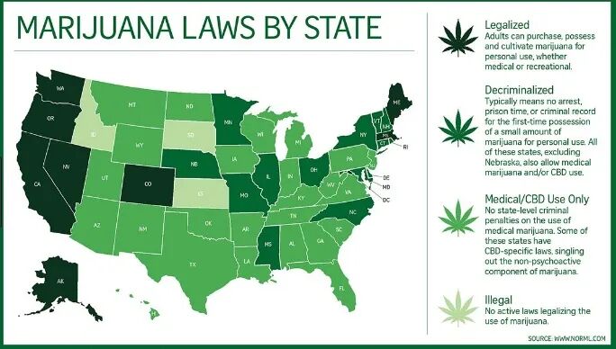 华盛顿州、科罗拉多州和俄勒冈州是率先将娱乐性大麻合法化的州,这三个州的大麻合法化问题得到了最广泛的研究,来自这里的数据可以作为大麻成瘾性和潜在伤害的参考。