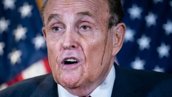 川普总统的私人律师朱利安尼11月19日在华盛顿共和党全国委员会总部举行的新闻发布会上。