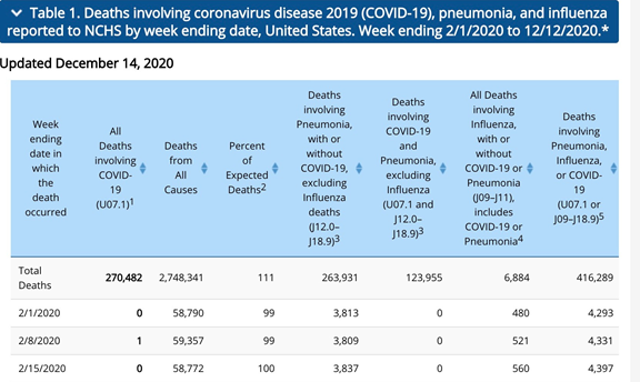 稍加仔细查看疾控中心的报表就能看到,其每周的临时死亡统计是从2020年2月1日的那一周才开始——在2月初美国认为新冠开始进入本国,并开始进行感染和死亡人数统计,而且今年12月的数字显然还没有统计完。此外由于报告滞后,这些数字还在不断更新。疾控中心说,根据辖区和死亡原因不同,报告滞后的时间可能从一周到八周甚至更长。