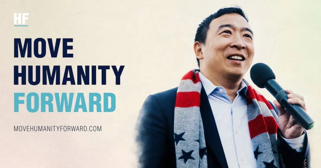 45岁的杨安泽在初选时的核心理念是,每月向每个成年美国人发放1000美元的全民基本收入,他称这是“自由红利”。