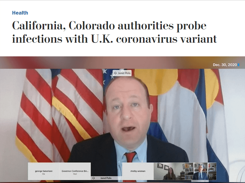 科罗拉多州官员报告美国首例已知的变异新冠病毒感染病例。
