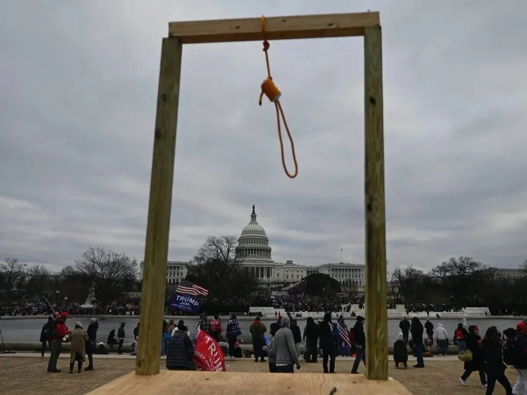 周三,国会大厦附近出现了多个套索,其中一个套在人体模型的脖子上,另一个是用美联社(Associated Press)摄像设备的电缆做成的。