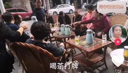 老同学们相谈甚欢,带着她在成都喝茶打牌。