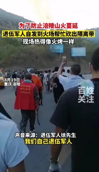 为了防止山火复燃,当地的退伍军人还自发组织,到火灾现场帮忙砍出隔离带。