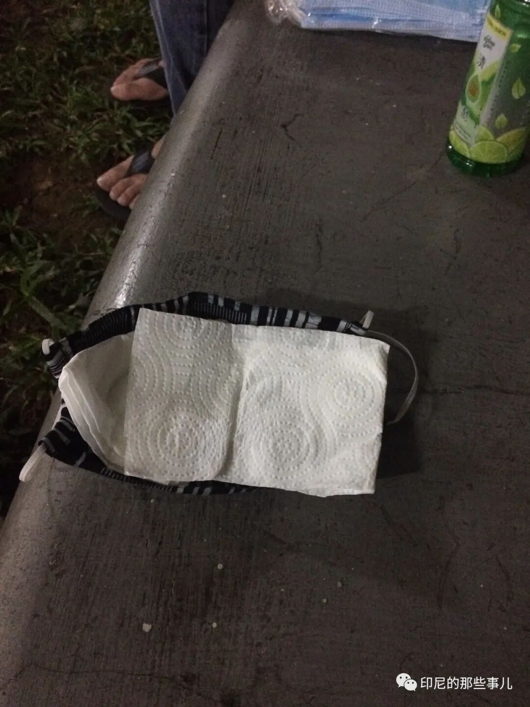 (这是我偶然发现的Abdul带的口罩,里面塞着几片卫生纸,他就是这么换口罩的)